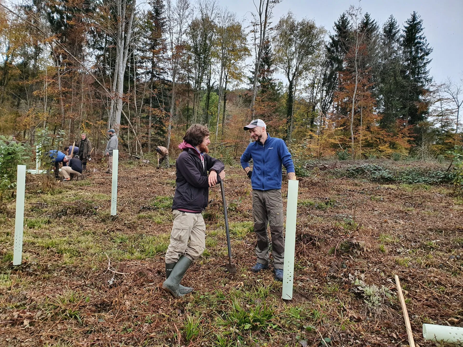 Den Anfang machten im Frühling 2021 insgesamt 35 Schülerinnen und Schüler aus Uster. Begleitet und angeleitet von Stadtförster Benjamin Kistner halfen sie bei der Aufforstung des Gemeindewaldes und pflanzten an zwei Tagen 100 neue Bäume. Zuvor hatten sie sich im Unterricht bereits mit dem Klimawandel beschäftigt und waren topmotiviert, nun selbst aktiv zu werden.