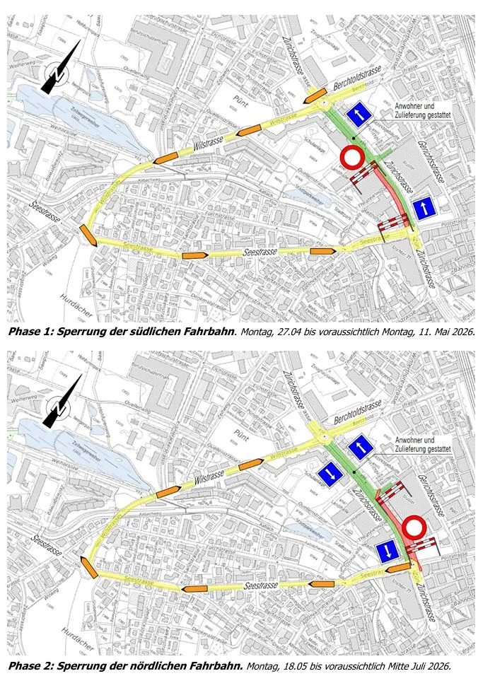 Einen Überblick über die Sperrungen während den zwei Phasen finden Sie im untenstehenden Plan.