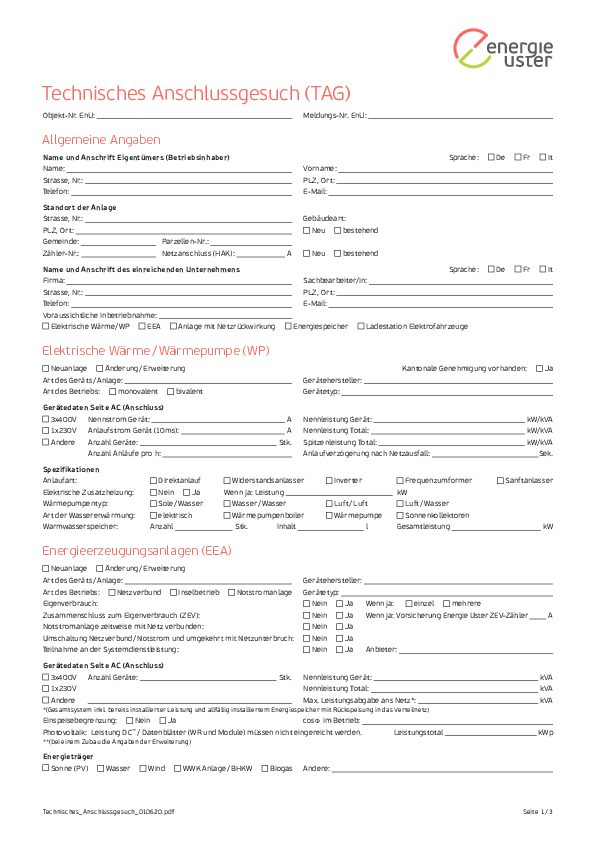 Technisches Anschlussgesuch (TAG)