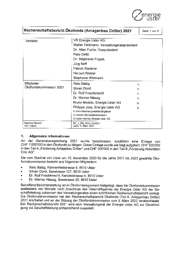 Rechenschaftsbericht Ökofonds (Anlagenbau Dritter) 2021