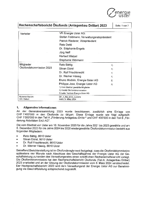 Rechenschaftsbericht Ökofonds (Anlagenbau Dritter) 2023