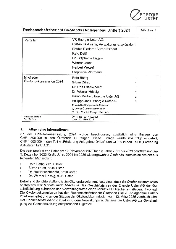 Rechenschaftsbericht Ökofonds (Anlagenbau Dritter) 2024