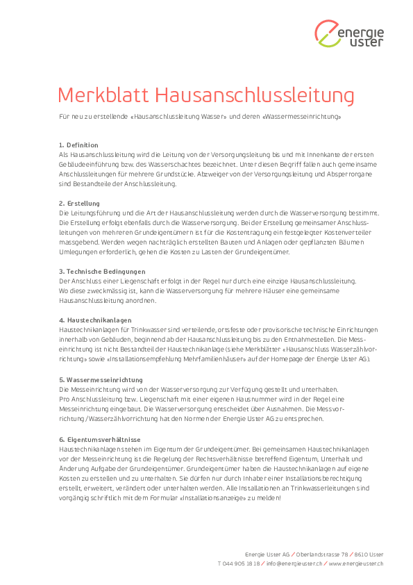 Hausanschlussleitung Info für Bauherren