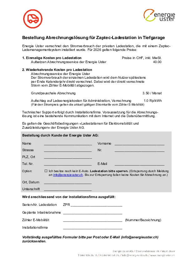 Bestellung Abrechnung – Zaptec Ladestation