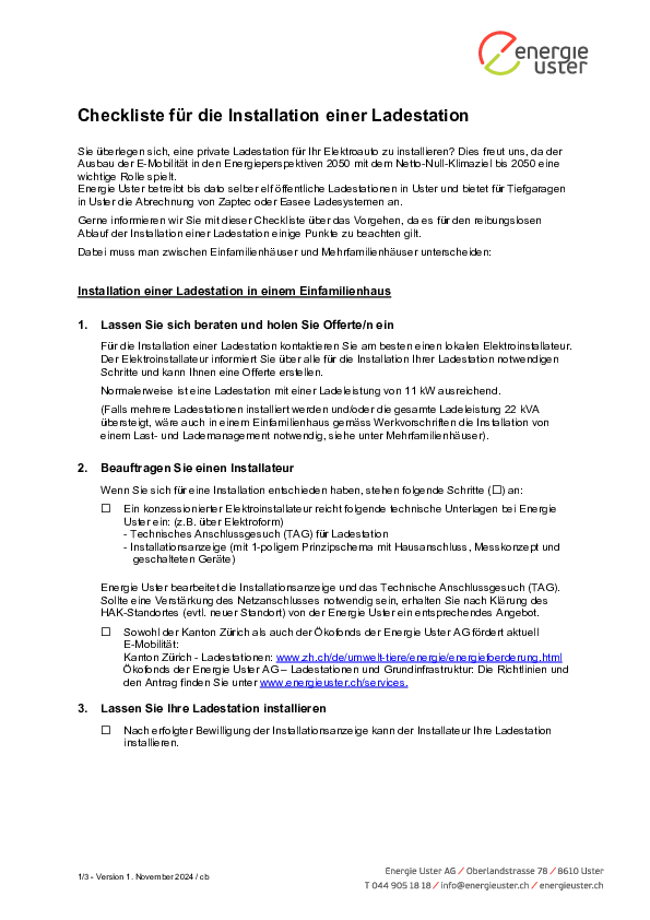 Checkliste zur Installation einer Ladestation