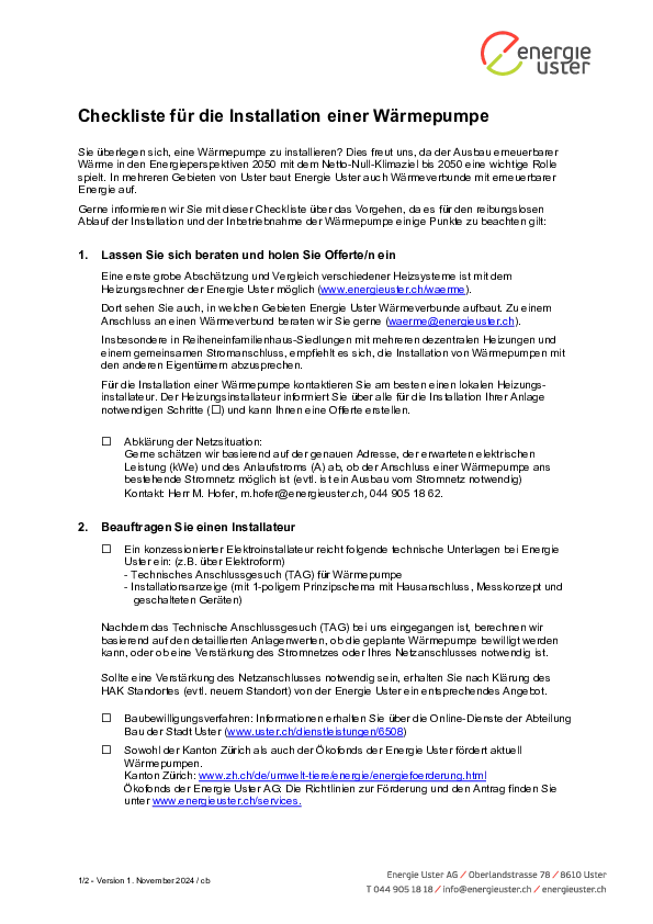 Checkliste zur Installation einer Wärmepumpe