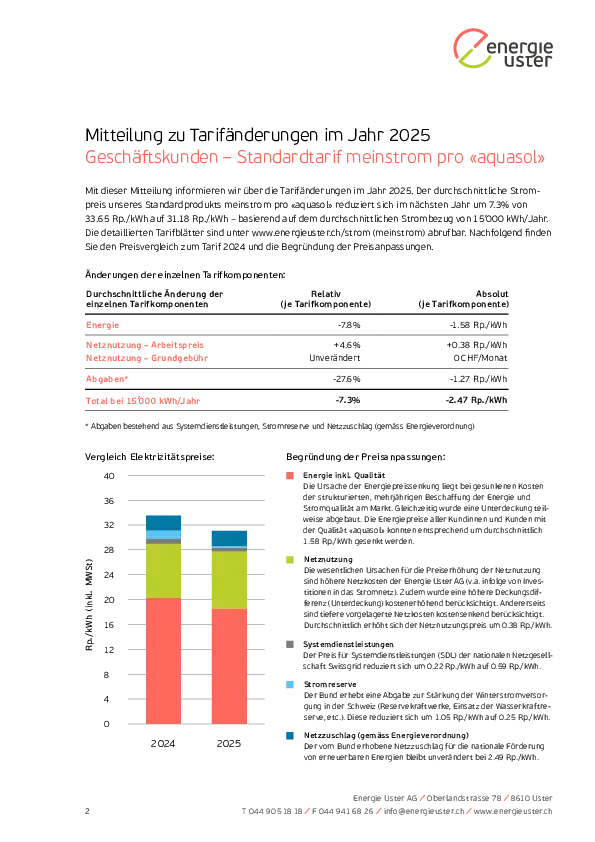 Mitteilung zu Tarifänderungen im Jahr 2025 Geschäftskund*innen
