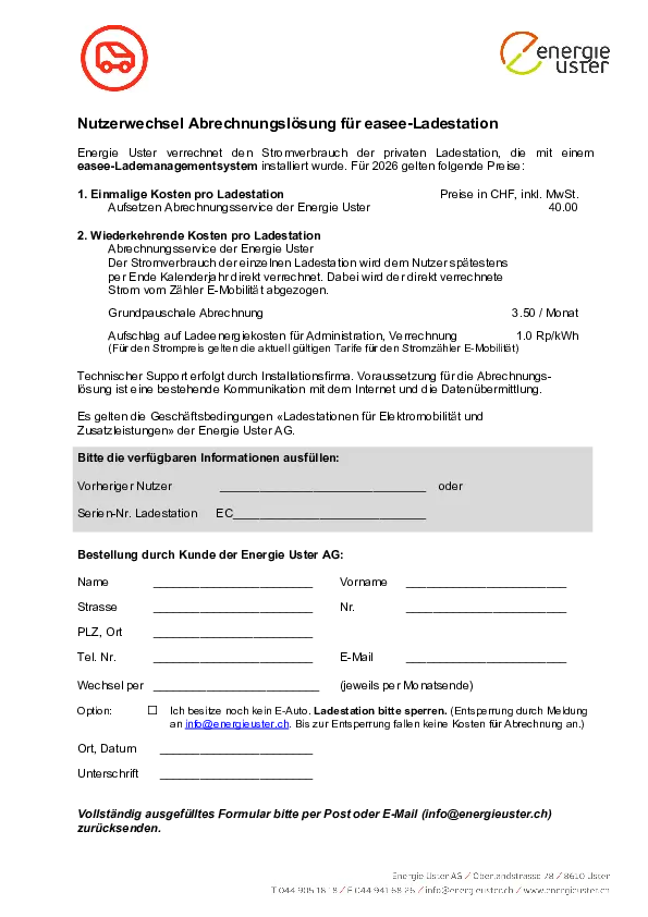 Bestellung Abrechnung – easee Ladestation