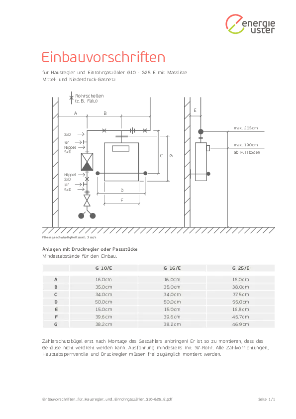 Einbauvorschriften Einrohrgaszähler G10-G25
