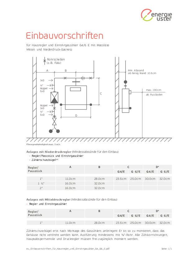 Einbauvorschriften Einrohrgaszähler G4/G6